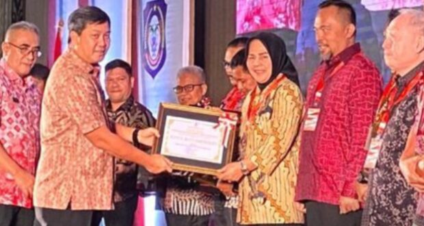 PortalBMR KOTAMOBAGU- Wali Kota Kotamobagu, Ir. Hj. Tatong Bara menerima penghargaan sebagai Terbaik 2 Pembangunan Daerah (PPD) dan penghargaan sebagai Terbaik 3 Sulut Sensanitasional Award Kategori Sanitasi Aman Tahun 2023 untuk tingkat Kota se – Provinsi Sulawesi Utara, Kamis (27/4).