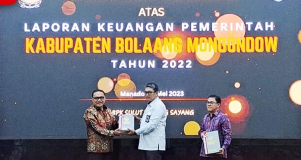 Senin, 15 Mei 2023 Laporan Keuangan Pemerintah Daerah (LKPD) tahun 2022 itu diserahkan langsung kepada Penjabat Bupati Bolmong Limi Mokodompit didampingi Ketua DPRD Welty Komaling di Kantor BPK Manado.