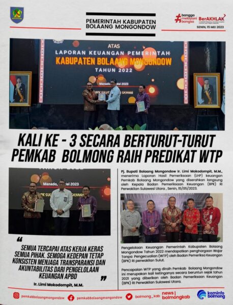 Dengan demikian hasil raihan opini WTP ini, Pemkab Bolmong sudah ketiga kalinya memperoleh Predikat WTP secara berturut-turut sejak 2021 lalu.