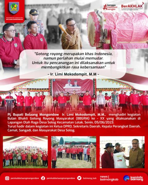Dikesempatan itu, Bupati Limi Mokodompit mengungkapkan, pencanangan tingkat kabupaten sempat vakum selama 3 tahun. Gotong royong merupakan khas Indonesia namun perlahan mulai memudar, sehingga pencanangan ini dilaksanakan untuk membangkitkan rasa kebersamaan,