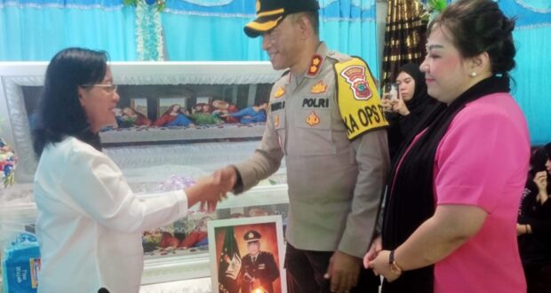 Kapolres Bolmong AKBP Arianto Salkery, SH ,MH didampingi Ketua Cabang Bhayangkari Bolmong Ny. Viska Indra, SH., MKn bersama personel dan anggota Bhayangkari Bolmong menyambangi rumah duka di Desa Inobonto kecamatan Bolaang Sabtu siang 15/7/2023.