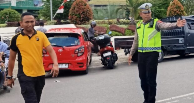 Jumat 4 Agustus 2023 Kanit Turjawali Satlantas Polres Kotamobagu IPDA Ronald Palembatas alumni SIP angkatan 51 resimen SIAP. Nampak saat pelaksanaan sholat Jum’at di Masjid Agung Baitul Makmur bersama personil mengamankan ruas jalan Ahmad Yani Kotamobagu.