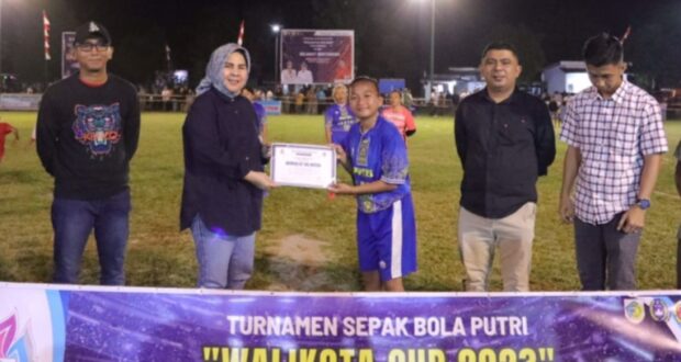 PortalBMR KOTAMOBAGU – Wali Kota Kotamobagu, Ir. Hj. Tatong Bara membuka secara resmi Turnamen Walikota Cup Sepak Bola Putri se – Bolaang Mongondow Raya (BMR), yang dilaksanakan di Lapangan Olahraga Kelurahan Pobundayan, Minggu (13/8).