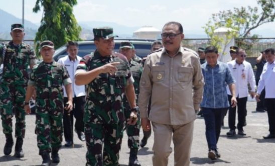 PortalBMR BOLMONG – Panglima Kodam XIII Merdeka Mayjen TNI Legowo W.R. Jatmiko, S.IP, M.M didampingi Ketua Persit Chandra Kirana Cristiana Sari Proboningrum bersama jajaran disambut jajaran Pemerintah Kabupaten Bolaang Mongondow (Bolmong) bersama jajaran Forkopimda lewat kunjungan kerja.