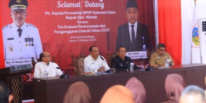 PortalBMR KOTAMOBAGU – Penjabat Wali Kota Kotamobagu, Dr. Drs. Hi. Asripan Nani, M.Si., menerima kunjungan Plt. Kepala Perwakilan Badan Pengawasan Keuangan dan Pembangunan (BPKP) Provinsi Sulawesi Utara (Sulut), Abdul Wahab, beserta tim evaluasi perencanaan dan penganggaran daerah Tahun 2023.