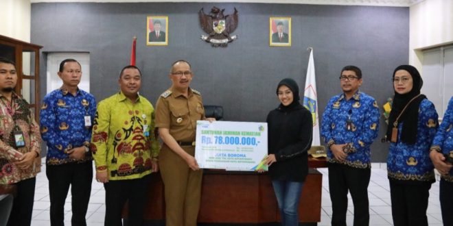 PortalBMR KOTAMOBAGU – Pj. Wali Kota, Dr. Drs. Hi. Asripan Nani., M.Si, Serahkan Santunanan Kepada Ahli Waris Peserta BPJS Ketenagakerjaan Non ASN dilingkungan Pemerintah Kota Kotamobagu.