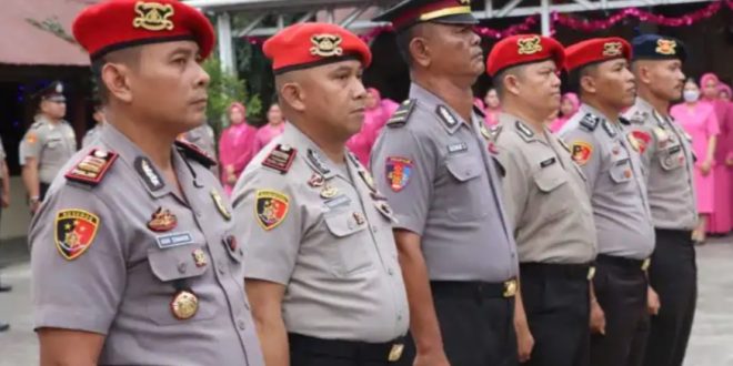 PortalBMR KOTAMOBAGU – Kapolres Kotamobagu AKBP Dasveri Abdi S.I.K Minggu, 31 Desember 2023 memimpin upacara Korps Raport setingkat lebih tinggi bagi anggota Polri yang terdiri dari Perwira Pertama Brigadir Polres dan Brimob Yon B Inuai yang diselenggarakan di halaman Mapolres Kotamobagu.