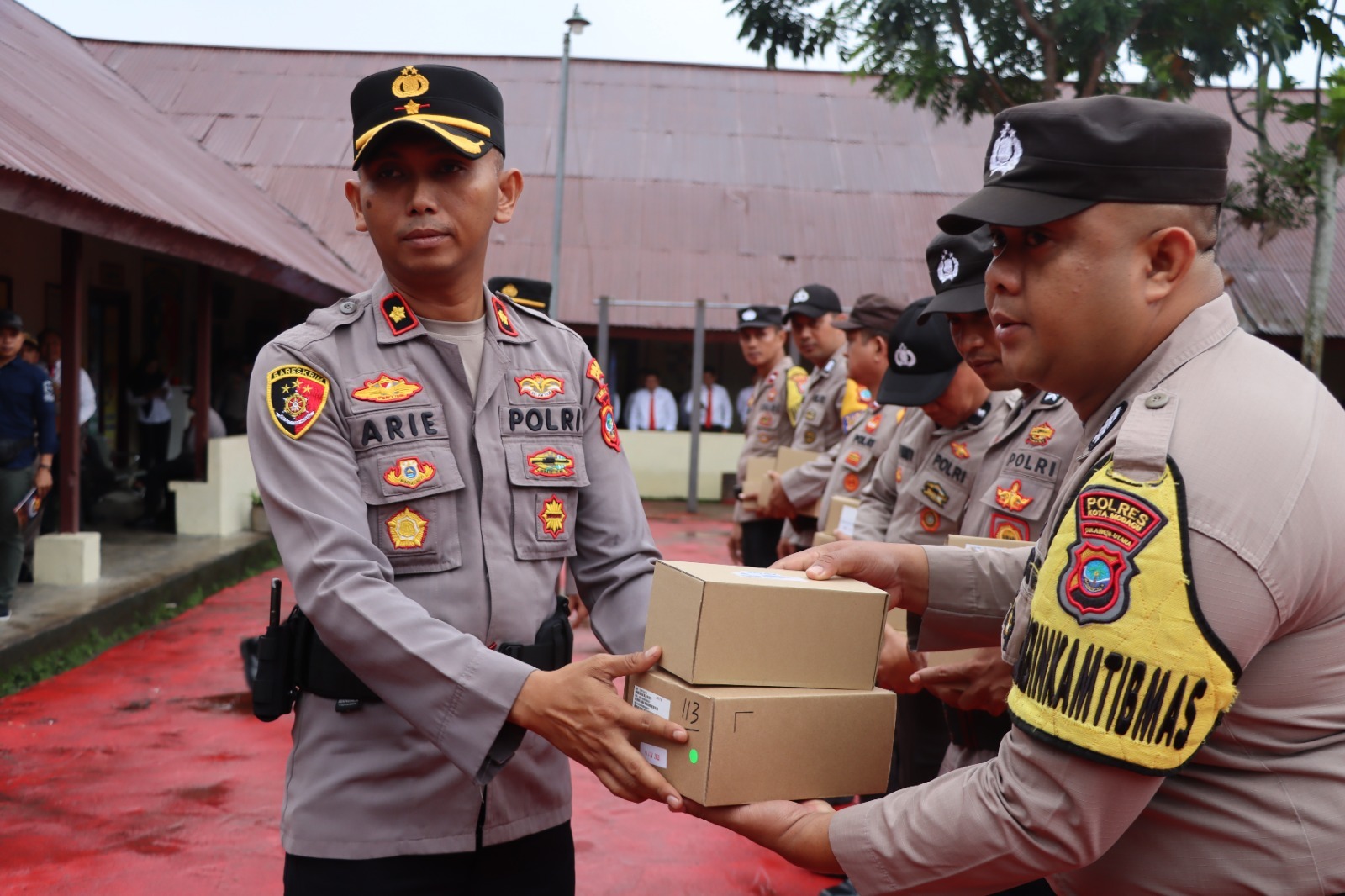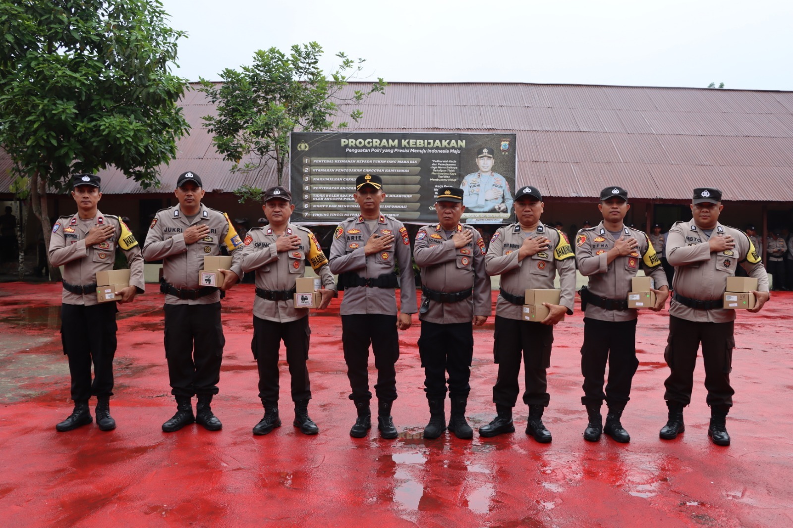 “Untuk itu, rekan-rekan yang menerima harus betul-betul menjaga fasilitas ini dan dipergunakan dengan baik untuk kepentingan dinas, sehingga barangnya tidak cepat rusak dan bisa berumur panjang” tegas Wakapolres.