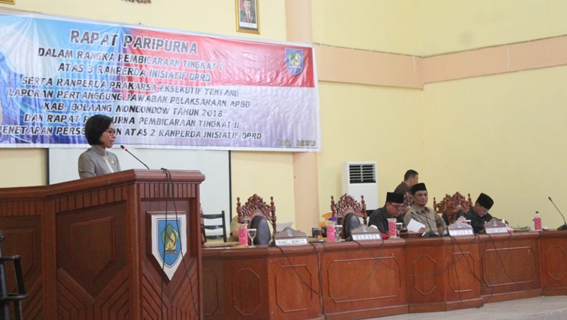 PortalBMR, BOLMONG –Bupati Bolmong Dra, Hj. Yasti Soepredjo Mokoagow saat menghadiri rapat paripurna …