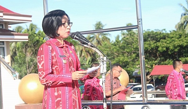 PortalBMR, BOLMONG – Bupati Bolmong Dra, Hj.Yasti Soepredjo Mokoagow saat memimpin apel perdana …